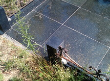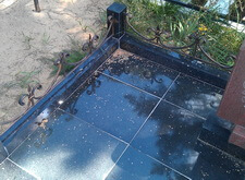 Могилу помыли. Особенно заметные потрескавшиеся швы замазали. Зону цветника почистили, лишние цветы унесли, еще хорошие помыли. Могила готова к посещению.